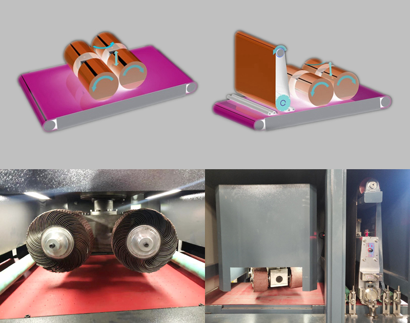 DRR-WX系列干式砂帶+滾刷+研磨機適用于各類平面板類零件表面拉絲、拋光、去劃傷、去除縱向毛刺、倒角、去氧化皮、拉毛、定厚等加工等。